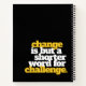 Add a touch of inspiration and motivation to penned thoughts with this notebook, which features the words "change is but the shorter word for challenge."