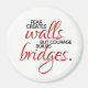 Add a touch of inspiration and motivation to your kitchen with this magnet, which features the words "fear creates walls but courage builds bridges" in elegant flowing script and sans serif lettering.
