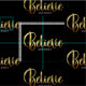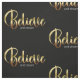 Make pjs, bedroom decor, bags, and so much more with this fabric, which features the motivational message "Believe and Dream" in stylized gold and white sans serif lettering, repeating on a black background.
