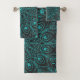 Ensemble de serviette de Bath d'inspirations de paon. Une belle conception a inspiré par les plumes du paon. Il y a également des tapis et des accessoires disponibles en cela motif.