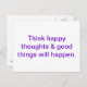 Recipients can perch this postcard anywhere around their home or office as a reminder of the power of thinking happy thoughts.