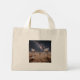 This vibrant tote bag features a tranquil tropical beach scene with swaying palm trees and a colorful sunset. It is a stylish and durable accessory perfect for summer vacations, beach trips, or as a daily reusable grocery bag.