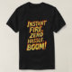 A digital illustration of the phrase Instant Fire, Zero Hassle Boom! with stylized, fire-shaped letters. The graphic is set against a white background.