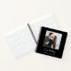 Guests can sign their best wishes, even add instant photos in this elegant SOFT or HARD COVER spiral-bound guest book featuring your favourite photo on the front with an inside border of any colour, we show white, and any background colour, we show black. Your name, date and any other info in chic lettering on the front. CHOOSE THE STYLE PAGES YOU WANT INSIDE!