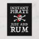 Instant Pirate – Just Add Rum. Funny quote pirate design is a great gift for a pirate lover who loves drinking rum. Perfect for Talk Like A Pirate Day or wear as a pirate costume on Halloween or at a party! If you love to drink rum and rum cocktails, you might be why the rum is gone! This funny saying pirate accessory has vintage text and a pirate skull graphic.