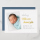 Les cartes de faire-part de naissance fraîches et modernes comportent une photo verticale avec une bordure blanche, placée en diagonale avec le nom de votre bébé en feuille d'or à côté. Les statistiques de naissance du bébé et la signature de votre famille complètent le design. Ajoutez trois photos supplémentaires à l'arrière.