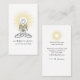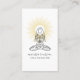 Un carte de visite instructeur de yoga mettant en scène une femme sereine dans une pose de lotus entourée de rayons dorés de lumière, avec son nom dans un script de type signature assez moderne.