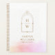 Instructeur de Yoga Monogramme céleste | Blush Pink Planner. Doté d'un arrière - plan rose vif et rêveur, il est décoré d'étoiles dorées luxueuses et d'un monogramme personnalisé.
