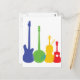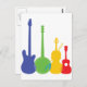 A group of silhouetted and colourful stringed instruments including an electric guitar, a banjo, a violin and a ukulele