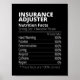 Insurance Adjuster Nutrition Facts Funny Poster