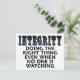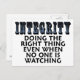 The thoughtful slogan on this merchandise encourages people to do the right thing, even when there's no pay-off. Its message says: Integrity. Doing the right thing even when no one is watching.