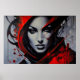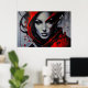 A striking work of art! This female portrait combines facial realism with explosive red and black paint splashes. Penetrating eyes and bold features create a mysterious and elegant atmosphere. Perfect for high-end decor, studios, and lovers of urban and contemporary art.