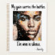 Stay organized with confidence using this planner inspired by Ferocity. The intense pixel portrait reflects quiet strength. Features the quote: "My gaze carries the battles I’ve won in silence."