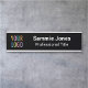 Easily personalize this interchangeable office door name plate with your own business logo, name, job title, or other custom text. You can customize the black background colour. Available in other metal colours in two sizes – standard 2 inch x 8 inch or long 2 inch x 10 inch – and in two styles – as a door name plate or a desk name plate. No minimum order quantity and no setup fee.