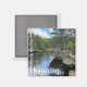 Célébrez les parcs d'état du Minnesota et revivez des souvenirs avec cet aimant du parc d'état d'interdiction. Située sur la rivière Kettle, cette photo a été prise près de Big Spring Falls. Les nids de grès formés par la rivière sont une caractéristique importante de ce parc, tout comme les ruines historiques de la carrière de grès banning.