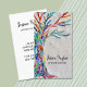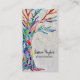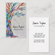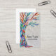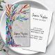 This unique business card is decorated with a mosaic Tree of Life design in rainbow colours on a soft grey background.