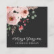 Hand painted style whimsical vivid pink floral blooms on black unique square business cards with hand written script typefaces. Hues of pink, green, and burgundy. Customize on the back of the card.
