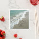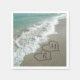 Elegant Sand Hearts written in the Beach nice to symbolize a Destination Wedding or tropical honeymoon travel vacation. Beautiful scenic image of clear aqua turquoise ocean water, with white waves crashing on the tan sand beach. Two interlocking hearts symbolize eternal love, even put your custom first or last name initials inside the hearts!