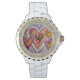 Watercolor painting of hearts interlocking with each other like love from life relationships. The colours are a soft lavender purple, pinks, red, yellows, and gold. Make customized love heart watch designs with your personal messages and/or photos. Use the "customize it" button. The hearts art makes great personalized custom wrist watch gifts!
