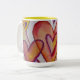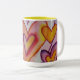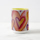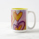 Watercolor painting of hearts interlocking with each other like love from life relationships. The colours are a soft lavender purple, pinks, red, yellows, and gold. This image is meant is a tribute to all those we love in our life. The interlocking love heart connections hold us together in joy and celebrations. It is love too for strengthening our souls for life's challenges. Personalize the heart mug with your own text and images using the Customize It option. Make special Valentine's Day, Wedding, Engagement, Baby, or Love custom mug gifts! Profits from this sale support the non-profit 501(c)3 DonnaBellas Angels.