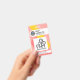 A light red cover is accentuated by a pair of slanting red and yellow stripes with underlying white horizontal stripes at the top and bottom of the badge.
