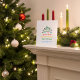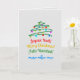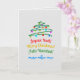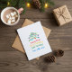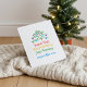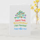 The Christmas card showcases a festive tree adorned with colourful ornaments, along with the holiday greeting "Merry Christmas" displayed in four international languages: French (Joyeux Noël!), Arabic (عيد ميلاد مجيد), English (Merry Christmas!), and Spanish (¡Feliz Navidad!). On the right panel of the card, there is a customizable text field, currently reading "I will be home for Christmas!" which can be personalized with a wish or message. This cheerful and vibrant card is perfect for those with an international flair and diverse backgrounds!