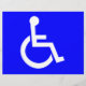 The International Symbol of Access (ISA), also known as the (International) Wheelchair Symbol, consists of a blue square overlaid in white with a stylized image of a person using a wheelchair. It is maintained as an international standard, ISO 7001, and a copyrighted image of the International Commission on Technology and Accessibility (ICTA), a committee of Rehabilitation International. It was designed by Susanne Koefoed in 1968. The symbol is often seen where access has been improved, particularly for wheelchair users, but also for other disability issue. Frequently, the symbol denotes the removal of environmental barriers, such as steps, to help also older people, parents with baby carriages, and travellers. Universal design aims to obviate the need for such symbols by creating products and facilities that are accessible to nearly all users from the start. The wheelchair symbol is "International" and therefore not accompanied by Braille in any particular language. Specific uses of the ISA include: * Marking a parking space reserved for vehicles used by disabled people/blue badge holders * Marking a vehicle used by a disabled person, often for permission to use a space * Marking a public lavatory with facilities designed for wheelchair users * Indicating a button to activate an automatic door * Indicating an accessible transit station or vehicle * Indicating a transit route that uses accessible vehicles (source wikipedia)