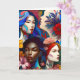 Great inspirational greeting card for personal use or businesses to promote women's equality. A diverse abstract collage of women and the text, "IWD" and "International Women's Day." March 8th is International Women's Day. The inside of the card has a short history on International Women's Day.