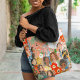 Beautiful quality tote bag in a heavy coated canvas. Shoulder strap is perfect length. Graphics are absolutely beautiful. The printing was great. The pink and black were perfect but the green didn't print as rich in color.