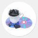 Internet cafe shown by a coffee cup filled with keyboard keys on a set of discs