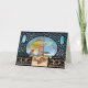This fantasy science fiction greeting card shows people relaxing on the beach from within one of the bungalows at Utopia Cytheria, one of the moons of Risa. The beautiful ringed planet Magrathea is seen rising through the clouds framed by a beautiful screen and beaded curtain arch.