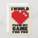 Pause My Game Gamer Nerdy Valentines Post Card - Pas besoin de redémarrer votre vie d'amour car nous avons la carte de jour Valentines ultime juste parfait pour les joueurs. Avec une illustration d'un coeur pixélisé exactement comme ceux que vous trouvez dans les jeux d'ordinateur avec le message : "Je voudrais mettre mon jeu en pause pour vous !" C'est la carte Valentines idéale pour votre geek meilleur demi. Vous recevrez certainement un niveau avec le joueur spécial dans votre vie une fois que vous donnez cette carte géniale.