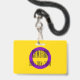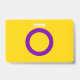 The background is the pride flag for intersex people. This is a purple ring on a yellow background. There is space for a custom name and pronouns.