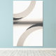 Broad, crescent-like forms drift in and out of the frame, partially revealed rather than fully declared, while finely spaced horizontal lines hold the composition in check. The interaction between curvature and repetition creates a measured visual cadence—expansive arcs pressing against a disciplined linear field. A tightly controlled spectrum of off-white, warm stone, and deep charcoal eliminates distraction, allowing surface, proportion, and negative space to carry the work. The result is a composition that feels architectural and meditative at once, precise in execution yet intentionally incomplete, inviting the eye to slow down and trace its quiet structure.