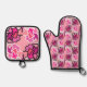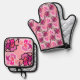 Into The Pink Mid Century Geometric Pattern Art Oven Mitt & Pot Holder Set