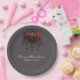 Lead your guests into a realm of dark, enchanting elegance with our exquisite black gothic party napkins. The deep, grey backdrop sets a dramatic stage, creating a striking contrast that captivates the senses. At the heart of the design hangs a bold black chandelier, symbolizing both beauty and the allure of the dark. Illuminated by three flickering candles, this intricate chandelier is embellished with shimmering black onyx jewels, surrounded by delicate roses. Each element evokes a sense of mystique, casting a spell of magic and setting the tone for an unforgettable wedding day. Personalize this party paper plate with the details of your special day.