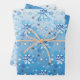 Intricate blue and white stars and snowflakes wrapping paper sheet