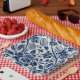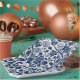 Intricate blue floral pattern on light background paper plate