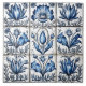 Exquisite patterns emerge from a collection of indigo azulejo tiles, featuring delicate floral motifs. These intricately painted tiles showcase the craftsmanship typical of traditional tilework, reflecting cultural artistry and design.