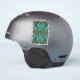 This vinyl sticker has an intricate Celtic knot design with four red dragon heads with twisted loops in jewel tone colours of greens, blues and red with a black background.