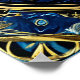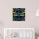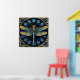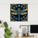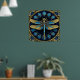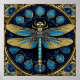 Detailed illustration of a dragonfly with colourful wings surrounded by decorative patterns in gold and blue, showcasing artistic elegance and nature's organic beauty.
