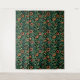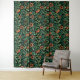 Seamless pattern with orange and pink flowers and green leaves on a black background. The design is vibrant, bold, and intricate.