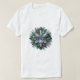 The entire composition is executed in our signature style, utilizing a stunning cool color palette of deep blues, forest greens, and silver-grey shading to simulate the complex texture of layered ice and frost. It is rendered with sharp, hard edges in an ornate illustration style, defining the superior, premium quality of the wearable art and ensuring the graphic looks like a professional logo, not a sticker.