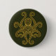 An intricate octopus design decorated with yellow swirls and dots. The symmetrical pattern has all eight of it’s legs outstretched and it’s eyes looking forward. The octopus sits on a deep green background creating a subtle contrast on the surface of this button. The body and arms of the octopus are comprised of delicate lines that come together to form a stunning pattern. This stylish design is a beautiful take on this strange and wonderful sea creature.