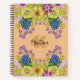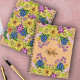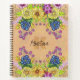 This is a beautifully designed, customizable notebook that perfectly blends modern style with classic elegance. The cover of the notebook is a warm beige, providing a neutral backdrop that allows the vibrant, symmetrical floral designs to truly shine. These intricate flowers, in hues of blue, yellow, and purple, radiate from the corners towards the centre, creating a visually pleasing balance. The centerpiece of the design is a large monogram “K”, which adds a personal touch to the notebook. Overlaying the monogram is the name “Kristina”, written in an elegant script font. This personalization makes the notebook uniquely yours, perfect for journalling, note-taking, or as a special gift.