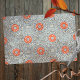This tissue paper is adorned with a mesmerizing pattern of geometric shapes in a harmonious colour scheme of orange, blue, and grey. The repeating design features large orange circles with smaller circles inside, surrounded by blue and grey diamond shapes connected by grey lines. The light blue background adds a touch of tranquillity to the overall design.