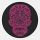 Intricate Pink Sugar Skull on Black Classic Round Sticker