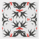 Intricate Sharp Black Red Motifs on Light Grey Wallpaper