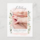 Introducing photo blush pink floral birth announcement. Beautiful watercolour floral and elegant script text. Part of a collection.