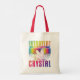 These bags were super cute (I purchased 3). The material is more of a canvas look & feel. The colour of the bag is slightly off white, but the letters look exactly as pictured. I took 3 photos in different lighting. Would recommend! I liked how there was an option to choose the font and colour of the name. The words are legible and the colours are exactly as pictured.